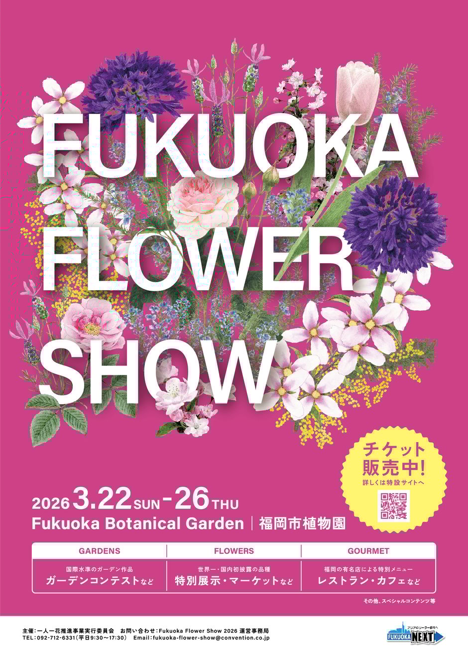 花をテーマとした MICE「Fukuoka Flower Show 2026」が、 2026 年 3 月 22 日(日)~26 日(木)の 5 日間、福岡市植物園で開催されます。